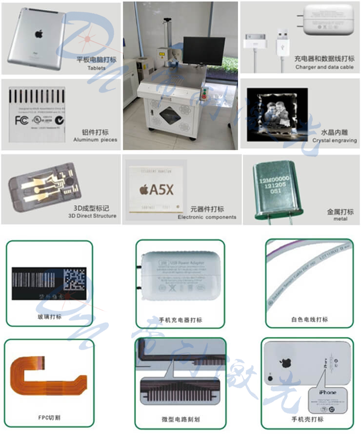 紫外激光打標機是利用其高能量的紫外光子直接破壞材料表面的分子鍵,使分子脫離物體,這種方式不會產生高熱量,故被稱為冷加工,用這種"冷"光蝕處理技術加工出來的產品具有光滑的邊緣和最低限度的炭化,因為它可被聚焦到亞微米數量級的點上,因此可以進行細微部件的加工,即使在不高的脈沖能量水平下,也能得到很高的能量密度,有效地進行材料的精細加工。大多數材料吸收紫外光更容易,特別是反光比較強的材料,廣泛應用于LCD液晶玻璃,LED基片,藍寶石基片,半導體晶圓,FPC柔性電路板,消費類電子產品,手機部件,陶瓷等的二維碼及數字字母精細打標,ITO刻膜等行業。